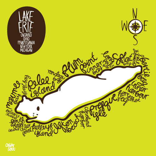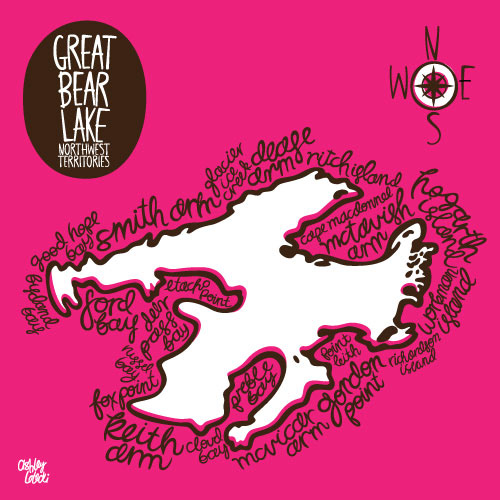 Currently in progress - A series of entirely hand-lettered maps featuring the largest freshwater lakes in the world and the interesting places they consist of