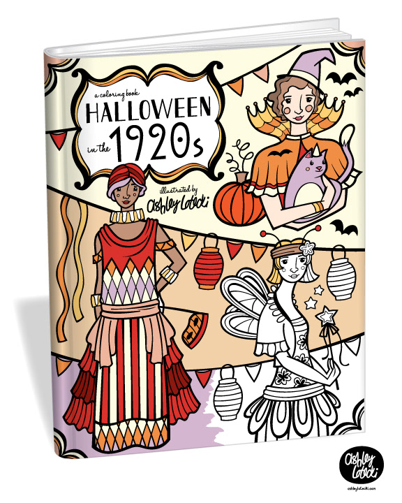 A partially hand-lettered coloring book concept based on my research into Halloween in the 1920s. © Ashley Lotecki