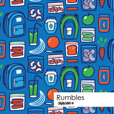 Original surface design pattern collection featuring a wide range of delicious snacks for after school rumbles in tummies! © Ashley Lotecki